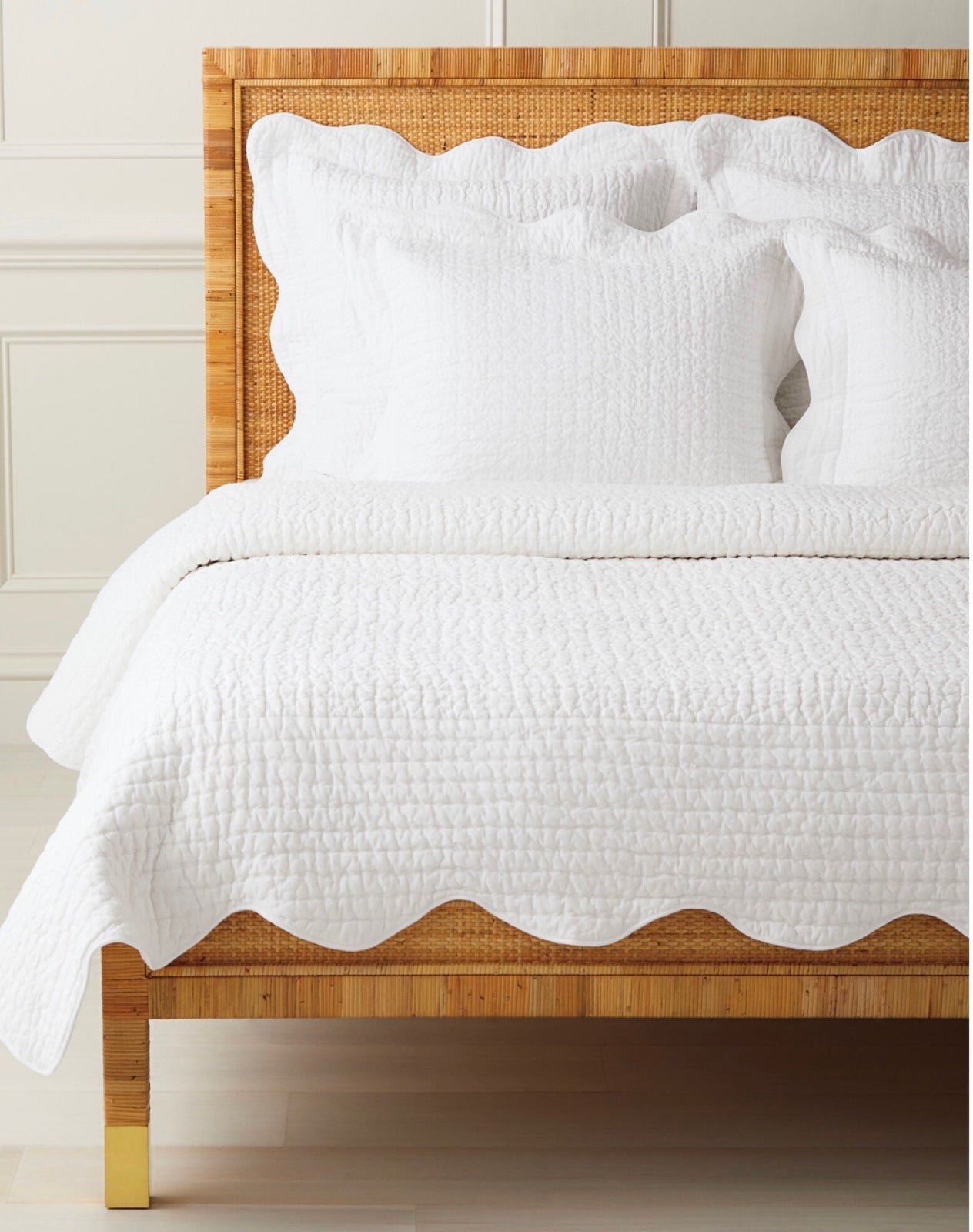 We love the charm this brings to the bedroom – from the detailed pickstitching done by hand to the oversize scallop edge. A soft cotton voile back makes it extra inviting, and the linen-cotton front adds just enough drape. Easy-to-layer hues complete the look.